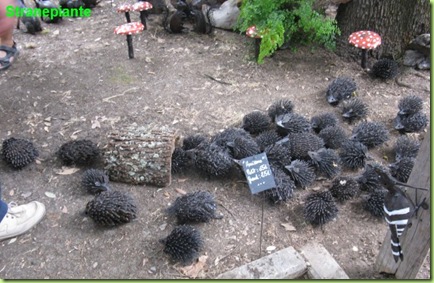 Anche molto carina l’istallazione di manufatti in ferro sparsi qua e la in una parte centrale del giardino, oltre ai porcospini qui sotto in foto c’erano farfalle, scoiattoli, funghetti, picchi, faraone e altri animali come i merli che da lontano sembravano veri.